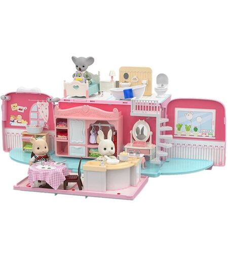 Voiture De Jeu Duplex Pour Filles, Maison De Poupée, Bus, Boulangerie, Voiture De Jeu, Animal De La Forêt Japonaise, Lapin, Ours, Écureuil, Koala, Chambre Familiale, Cuisine