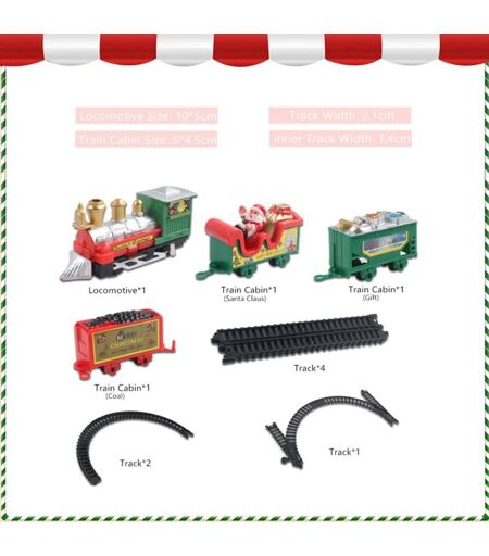 Description:Mini train électrique de noël avec père noël.Cadeau parfait pour noël ou nouvel an, ajoutez une atmosphère de festival heureuse.Matériaux de haute qualité, non toxiques et sûrs, surface lisseEmbrassez l'esprit de noël avec notre mini train de noël, superbe décoration de noël pour la décoration de la maison de la fête de noël.Une super décoration pour votre maison!Spécifications:Type: Train électrique de noëlMatériau: PlastiqueBatterie: 1 pile AA (non incluse)Circonférence de la piste: 216cmApproprié: décoration de noël, décoration de la maison, cadeaux pour enfants, décoration d'arbre de noëlEmballage Inclus:1 * Train électrique de noël ...