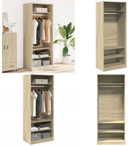 Garde-robe chêne sonoma 80x50x200 cm bois d'ingénierie Faites de l'ordre dans votre armoire et choisissez facilement votre tenue grâce à cette garde-robe ! Matériau robuste et durable : le bois d'ingénierie est d'une qualité exceptionnelle avec une surface lisse et présente également résistance, stabilité et résistance à l'humidité. Grand espace de rangement : l’organisateur de placard offre beaucoup d’espace pour organiser vos vêtements et vos sacs. L'étagère est idéale pour les boîtes et les vêtements pliés, tandis que vous pouvez accrocher vos tenues plus longues sur la barre à vêtements. Design élégant et compact : grâce à ses lignes épurées et à son design minimaliste, l'armoire s'intègre parfaitement à votre pièce et elle est également parfaite pour les petits espaces grâce à sa taille compacte. Attention : Pour éviter qu'il ne bascule, ce produit doit être utilisé avec le dispositif de fixation murale fourni. Vos avantages Faites de l'ordre dans votre armoire et choisissez ...