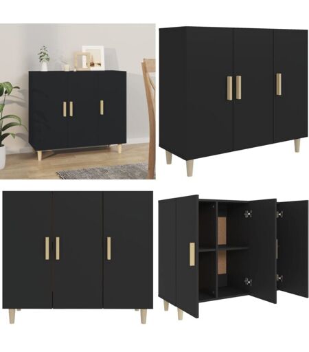 Buffet noir 90x34x80 cm bois d'ingénierie Ce buffet classique est destiné à être un supplément décoratif et pratique à votre maison. Matériau haute de gamme : le bois d'ingénierie est d'une qualité exceptionnelle avec une surface lisse et présente également résistance, stabilité et résistance à l'humidité. Grand espace de rangement : l'armoire latérale dispose de 3 portes, offrant un grand espace de rangement pour garder vos différents articles essentiels quotidiens bien organisés et facilement accessibles. Le dessus de cette armoire est idéal pour exposer vos objets ornementaux. Facile à nettoyer : cette armoire de rangement est facile à nettoyer avec un chiffon humide. Design élégant : ce buffet présente un design élégant, qui introduira un air de charme unique à votre décor intérieur actuel ! Attention : Afin d'éviter qu'il ne bascule, ce produit doit être utilisé avec le dispositif de fixation murale fourni. Vos avantages Ce buffet classique est destiné à être un supplément ...