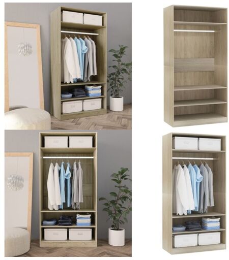 Garde-robe Chêne sonoma 100x50x200 cm Bois d'ingénierie Cette garde-robe compacte facilite l'accès à vos vêtements ou accessoires du quotidien. Elle fournira une solution de stockage parfaite et ajoutera une touche chic à votre maison existante. Cette garde-robe est faite de bois d'ingénierie, ce qui lui assure solidité, durabilité et longévité. Elle comprend 3 petits compartiments et 1 grand compartiment avec tringle pour vous permettre de ranger vos tenues plus longues et d’autres vêtements pliés ou accessoires, tels que pulls, jeans, chapeaux, sacs à main, etc. Toute la surface est facile à nettoyer. Cette garde-robe est facile à assembler. Vos avantages Cette garde-robe compacte offre une solution de rangement idéale et ajoute une touche élégante à votre maison ! Autres spécifications Couleur : chêne sonoma Matériau : bois d'ingénierie Dimensions : 100 x 50 x 200 cm (l x P x H) 3 petits compartiments 1 grand compartiment avec tringle Veuillez noter : Les vis et les chevilles pour ...