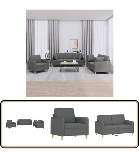 VIDAXL Ensemble de canapés 3 pcs coussins gris foncé tissu - Canape - Ensemble De Canape - Fauteuils - Salon - Mobilier