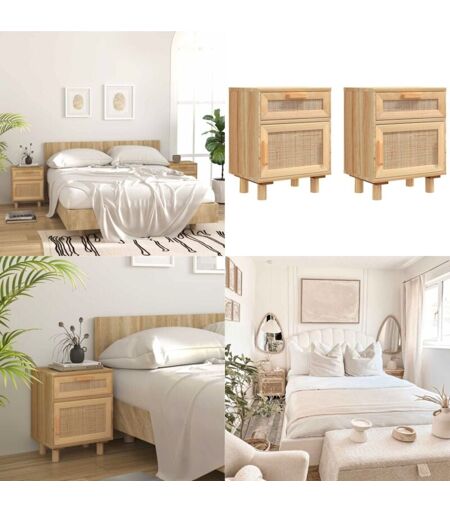VIDAXL Tables de chevet 2 pcs Marron Bois pin massif et rotin naturel - Table De Chevet - Meuble De Chambre - Mobilier Scandinave - Commode - Armoire