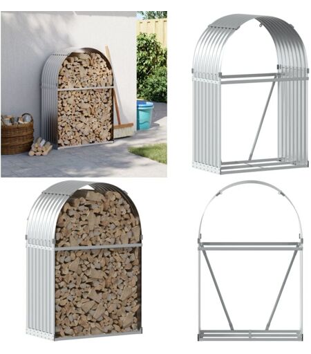 VIDAXL Porte-bûches argenté 80x45x120 cm acier galvanisé - Porte-bûches - Rangement Bûches - Abri à Bûches - Stockage Bois - Cheminée - Home & Living