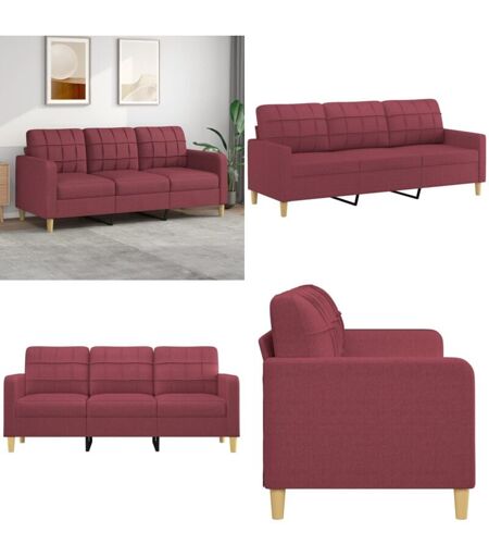 Vidaxl - Canapé à 3 places Rouge bordeaux 180 cm Tissu - Canapé Trois Places - Canapé Rouge - Canapé Design - Canapé Moderne - Canapé Salle à Séjour