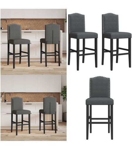 VIDAXL Chaises de bar lot de 2 bois massif d'hévéa et tissu - Chaise De Bar - Tabouret De Bar - Fauteuil De Bar - Meubles De Cuisine - Mobilier Moderne