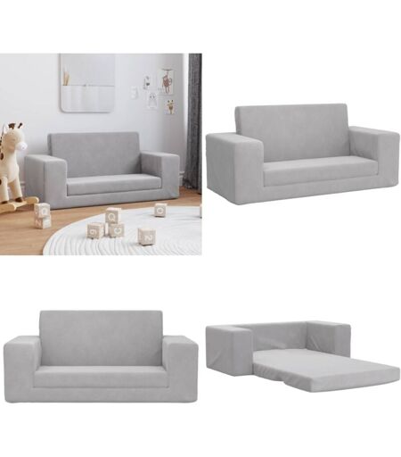 VIDAXL Canapé-lit enfants 2 places gris clair peluche douce - Canapé Lit Enfant - Canapé Pliable Enfant - Canapé Bébé - Meuble Chambre Enfant - Mobilier