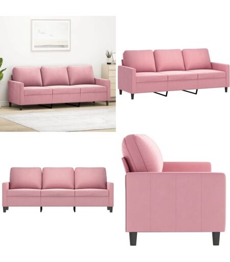 Vidaxl - Canapé à 3 places Rose 180 cm Velours - Canapé Trois Places - Canapé Velours - Canapé Rose - Canapé Design - Meuble Salon - Home & Living