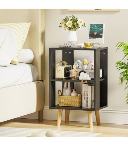 SIFREE Table de Chevet led avec Télécommande – 2 Étages Rangement Ouvert, Plateau mdf & Pieds en Hêtre – Design Moderne Noir 40x30x64cm (Idéal Salon/Chambre)