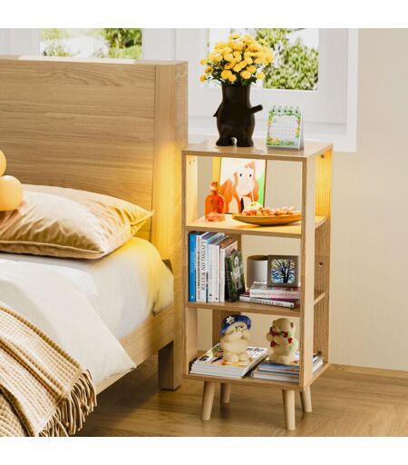 SIFREE Table de Chevet led 3 Niveaux avec Télécommande - Meuble mdf et Pieds en Hêtre 90kg 40x30x88cm pour Studio & Chambre