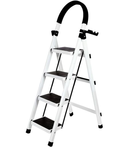 DAZHOM Escabeau marche pied 4 marches Antidérapant en Acier 39 x 74 x 133 cm blanc et noir