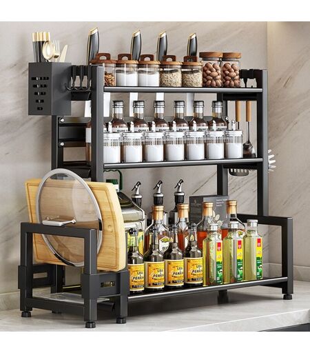 DAZHOM Tagère à épices Noir 3 niveaux Porte-épices en métal Étagère de cuisine pour Cuisine, Salle de Bain, Comptoir