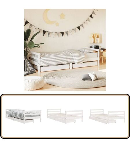 VIDAXL Cadre de lit d'enfants tiroirs blanc 90x190 cm bois pin massif - Lit Bébé - Lit Enfant - Meuble Enfant - Chambre D'enfant - Mobilier Enfant