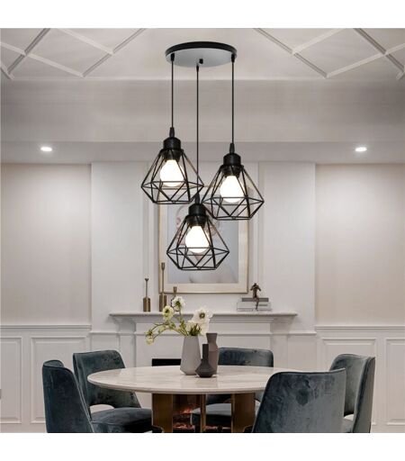 STOEX Plafonnier Rétro à 3 Lumières Suspension Lustre E27 Cage En Métal Suspension Luminaire Vintage D'Intérieur Noir b