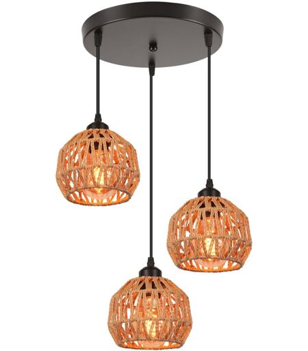 STOEX 3 Lumières Lustre Vintage Lampe De Plafond En Corde De Chanvre Luminaire Plafonnier D'Intérieur En Métal Pour Salon Couloir Chambre à Coucher