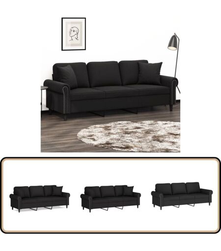 Vidaxl - Canapé 3 places avec oreillers décoratifs noir 180 cm velours - Canapé 3 Places - Canapé Velours - Canapé Noir - Meubles Salon - Ameublement
