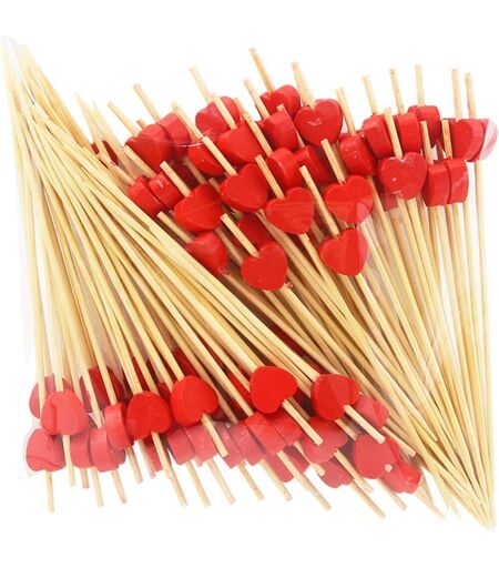 (Rouge) 100 Bâtons De Cocktail, 12cm C¿Urs En Bambou Jetables, Cure-Dents En Bois, Brochettes Pour La Décoration Des Aliments, Verres À Cocktail, Carnaval, Fêtes D'anniversaire.