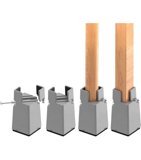 ?MATÉRIAUX DE HAUTE QUALITÉ?Le lot de 4 pieds de lit réglables est fabriqué en plastique dur durable et robuste pour supporter le poids des meubles les plus lourds de votre maison ou de votre bureau et supporter en toute sécurité jusqu'à 2000 kg (4400 lb). Ils ne grincent pas comme les autres rehausseurs de lit. Les traverses inférieures en feutre haute densité protègent vos planchers de bois franc, de céramique, de linoléum et de moquette des égratignures et des éraflures. ?Rehausseurs de pieds de table avec pinces à vis? Les autres rehausseurs de tabouret n'ont pas assez d'adhérence et tombent facilement. Pour résoudre ce problème, nous avons amélioré la hauteur du lit réglable avec des pinces à vis. Utilisez des clips à vis pour ajuster et fixer, et les pieds de meubles enveloppés ne tombent pas facilement. ?Largeur réglable? Pieds de chaise Riser de 4 pouces. Convient aux pieds ronds ou carrés d'une largeur de 22 mm/0,8"" à 42 mm/1,6"". Hauteur réelle : 103 mm/4 pouces. REMARQUE : Ne convient pas aux pieds de meubles inclinés. ?CRÉER UN ESPACE UTILE?Non seulement un espace de rangement sous le lit, mais fournit également une hauteur supplémentaire pour que l'aspirateur ou l'aspirateur robot fonctionne de manière plus flexible. Ils permettent également aux personnes âgées d'entrer et de sortir plus facilement du lit. Augmentez la hauteur des meubles fixes lourds tels que les lits, les canapés, les fauteuils et les tables de 100 mm pour éviter les douleurs aux épaules et au cou causées par la faible hauteur des meubles. ...
