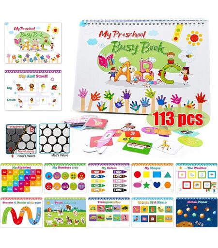 Livre D'activités Pour Enfants, 113 Pièces, Jouet Éducatif Sensoriel, Livre Magique Avec Velcro, Planche D'apprentissage Précoce, Jouet Montessori Pour Tout-Petits