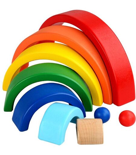 Blocs De Construction Montessori En Bois Arc-En-Ciel Pour Enfants, Jouet En Bois Coloré D'apprentissage Préscolaire, À Empiler, Arquées, Jouet Éducatif