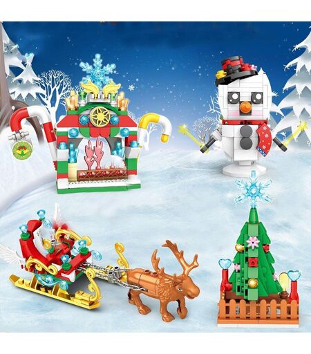 Blocs De Construction De Bonbonnière, Ville, Village D'hiver, Arbre De Noël, Bonhomme De Neige, Père Noël, Briques, Jouets, Cadeaux Pour Filles, 2021