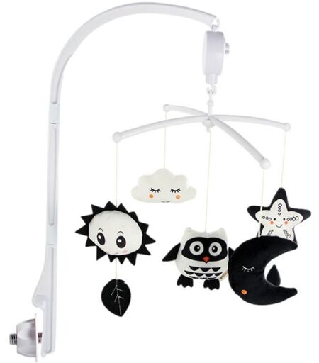 Hochets De Berceau Pour Bébé De 0 À 12 Mois, Jouet Mécanique Pour Bébé, Boîte À Musique Animal Noir Et Blanc, Cloche De Lit, Jouets Mobiles Pour Nouveau-Nés