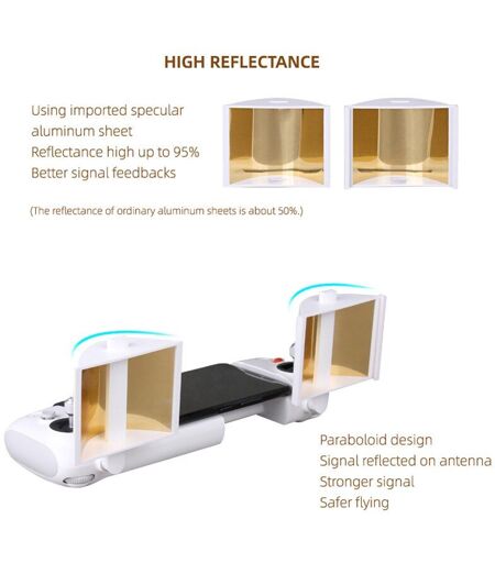 Amplificateur de Signal pour Drone Xiaomi FIMI X8 SE, amplificateur de portée d'antenne, émetteur de Signal, télécommandeCaractéristique:1. Améliorer le signal d'antenne2. Étendre la distance de contrôle à distance3. Réduire le risque de collision4. En utilisant une feuille d'aluminium spéculaire importée, il présente une réflectivité élevée jusqu'à 95% et de meilleurs retours de signal (la réflectivité des feuilles d'aluminium ordinaires est d'environ 50%).5. Conception parabolique, signal réfléchi sur l'antenne, signal plus fort, vol plus sûr.Spécification:Matériau: plaque d'aluminium + plastiquePoids Net: environ 70gConvient à la télécommande Xiaomi FIMI X8 SEListe des paquets:Amplificateur de Signal 1 paireRemarques: le Drone Xiaomi FIMI X8 SE n'est pas inclus. ...