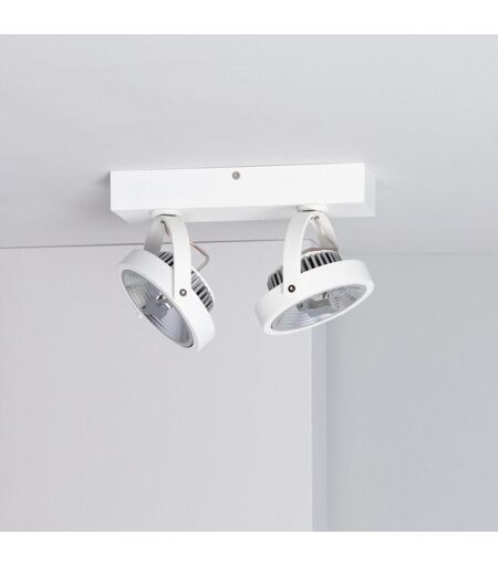 Ce Spot LED 30W CREE en Saillie Orientable AR111 Dimmable Blanc intègre deux sources lumineuses avec une technologie COB qui proportionne une luminosité de 800 lm chacuns. Il fournit sur un angle de 24º, une lumière de grande qualité qui assure une reproduction très naturelle des couleurs. Ce type de lumière s'harmonise parfaitement avec l'éclairage général de tout espace. Il se monte en saillie en vissant les 4 vis sur le support métallique. Les 2 drivers sont livrés pré-câblés, ce qui simplifie l'installation du spot. Le spot peut tourner jusqu'à 350° sur son axe. FICHE TECHNIQUE: Dimensions: 195 mm x Ø120 mm ...