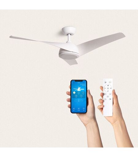 Ledkia Ventilateur de Plafond Silencieux Eubea 132cm Motor DC Sans Lumière Contrôleur mural + télécommande Blanc Blanc Oui