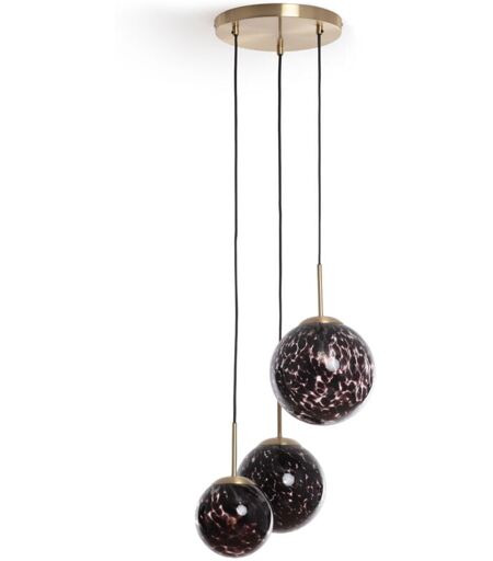 La Suspension Métal et Verre Pardo est le point lumineux qui habillera votre pièce en lui apportant une touche de caractère et d'élégance . Son design particulier permettra de le placer dans des espaces au style classique ou vintage . Caractéristiques de la Suspension Métal et Verre Pardo Cette suspension Pardo est composée d'une rosace, plus grande que d'habitude, métallique, de couleur or et de trois abat-jour sphériques en verre avec un effet imprimé animalier qui lui donne une touche sauvage et beaucoup de personnalité . Vous pouvez la placer dans des environnements aussi variés que des halls, salons, salles à manger, chambres ou locaux commerciaux . La lumière émise par cette lampe dépendra de l'ampoule G9 installée , pouvant choisir entre créer un environnement plus chaud, neutre ou froid. Nécessite 3 ampoules G9 NON INCLUSES dans le produit . E14 NON INCLUS ...