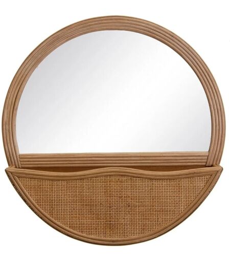 Grand miroir rond avec rangement en rotin Rotin et Verre A suspendre. Dimensions : Hauteur 60 cm - Largeur 60 cm - Profondeur 12 cm Dimensions de la partie miroir : 51 x 33 cm. ...