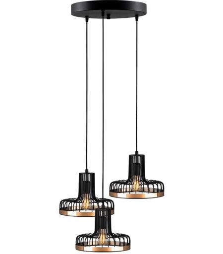 Suspension "Fellini" Noir/Cuivre 3 x E 27 Sans Ampoule [OPV-527ABY1773] ...
