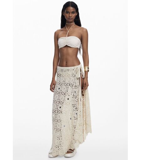 Desigual Jupe portefeuille crochet mandalas WHITE U female