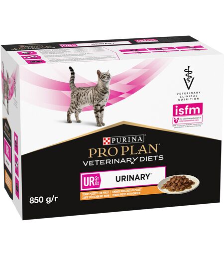 Les chats souffrent souvent de maladies des voies urinaires inférieures et de calculs urinaires. L'aliment PURINA PRO PLAN Veterinary Diets Feline UR ST/OX - Urinary au poulet constitue une nourriture diététique, spécialement formulée pour réduire... ...