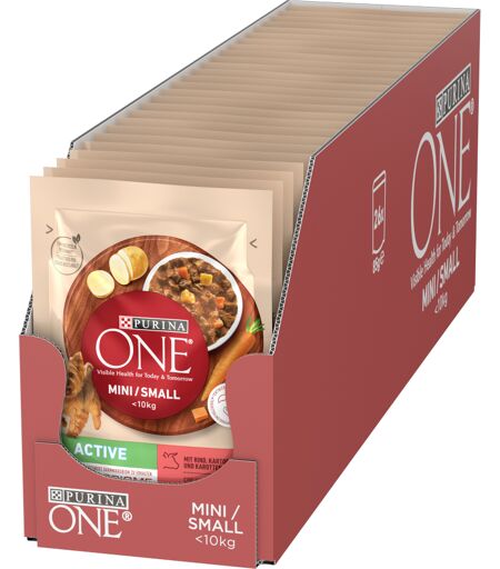 26x85g Purina ONE Mini Active bœuf & carottes nourriture pour chiens humide