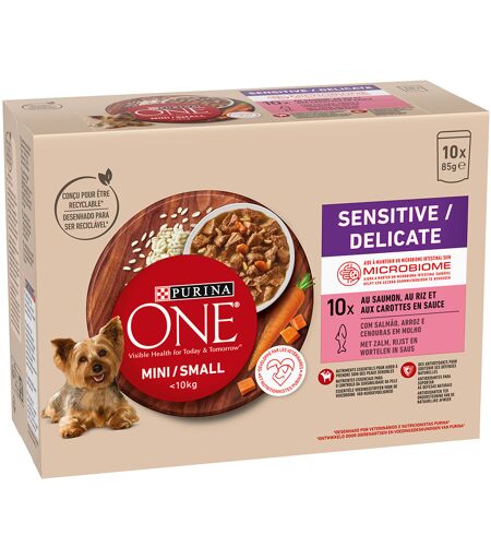 10 x 85g de nourriture humide pour chien PURINA ONE Mini Sensitive-Delicate au saumon