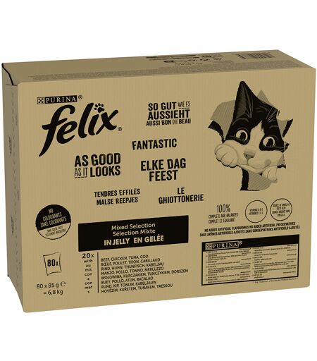 Mégapack Felix Tendres Effilés 80 x 85 g pour chat - bœuf, poulet, thon, cabillaud
