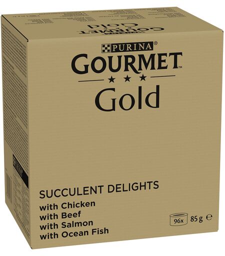Jumbopack Gourmet Gold Les Effilochés 96 x 85 g pour chat - poulet, poisson de l'océan, bœuf, saumon