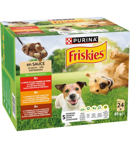 24x85 Friskies Adult en sauce au bœuf, au poulet et à l'agneau Nourriture pour chiens humide