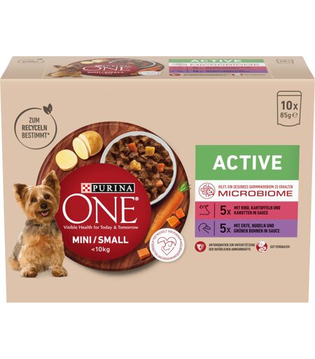 10x85g Purina ONE Mini Active bœuf et canard nourriture pour chiens humide