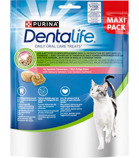 Les friandises à mâcher Dentalife de PURINA constituent de délicieuses récompenses qui contribuent à l'hygiène bucco-dentaire des chats. Croustillantes et poreuses, elles produisent un effet abrasif qui permet de réduire la formation de plaque... ...