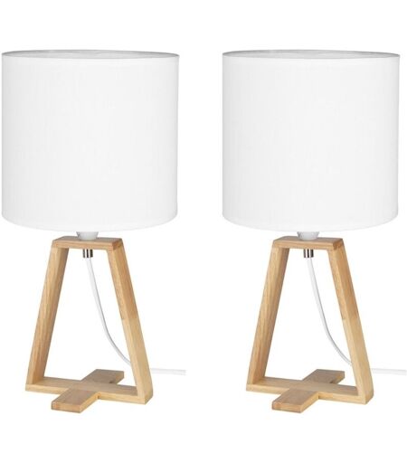 FORLIGHT Nuts (2pcs) Lampe de table nordique pour la chambre à coucher et le salon. Lampe de chevet en bois naturel et textile blanc pour chambre à coucher et
