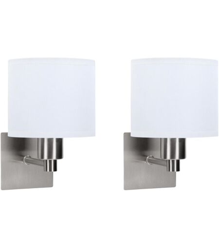 Lyon (2 pcs.) Applique de chambre à coucher en nickel satiné avec abat-jour en textile blanc. Lampe de chevet pour ampoule E27. - Forlight