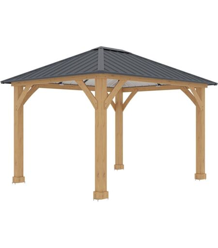 Pergola de Jardin Gardiun Tucson 10,72 m2 362x297x283 cm Bois stratifié Piliers 14x14 cm Couverture en acier Fixation incluse