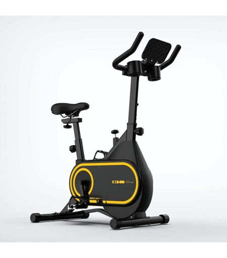 Equipez votre salle de sport avec le nouveau vélo indoor Keboo Fitness 300 Series. Ce vélo est équipé d'un système de courroie et d'une roue d'inertie de 6 kg, qui génère plus d'énergie cinétique grâce à l'effort. Pour commencer l'entraînement, il suffit de régler le siège rembourré et de choisir l'intensité souhaitée parmi les 8 niveaux proposés. L'écran LCD affiche les principaux indicateurs de suivi de l'entraînement : temps, vitesse, distance et calories brûlées. Il dispose également d'un support pour tablette/téléphone portable et de deux porte-bouteilles. Les pédales sont antidérapantes et dotées de sangles réglables qui peuvent être adaptées individuellement, de manière simple et rapide. Le cadre étant constitué d'un châssis en acier robuste, il peut supporter jusqu'à 100 kg. Ce modèle est léger et dispose de roues de transport ainsi que de stabilisateurs pour s'adapter aux sols irréguliers. Faire de l'exercice à la maison n'a jamais été aussi facile ! Caractéristiques : ...