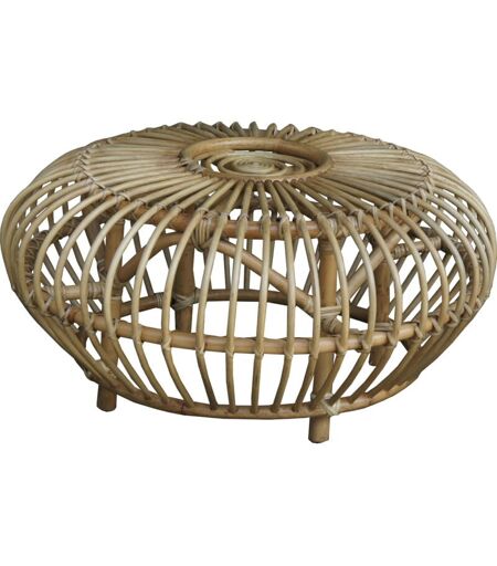 Table Basse Ronde en Rotin Naturel Chillvert Parma 73x73x39 cm avec Motif Géométrique