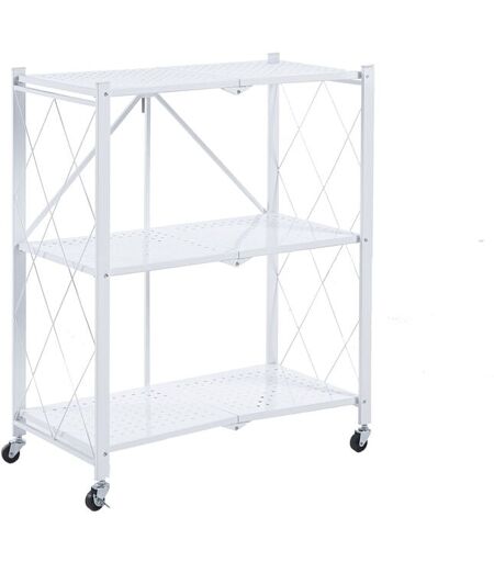 CATTER HOUSE Tagère de Rangement à 3 Niveaux Pliable et Roues catterhouse Kim 84 - 71,5x36x84 cm Charge Lourde 120 Kg Cadre Acier Blanc