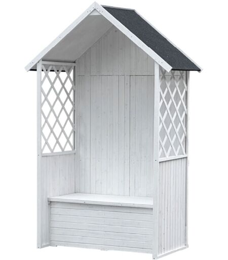 Gardiun - Banc de Jardin et Coffre de Rangement pour Terrasse ou Jardin Chloe Blanc 147x76x225 cm Toiture Bitume Bois Certifié FSC-Reach