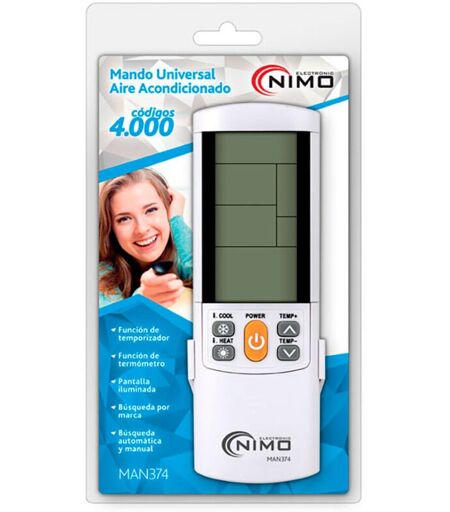 Télécommande universelle pour climatisation avec 5000 codes. valable pour toutes les marques, option eco, verrouillage de la température max.-min. fonction minuterie, thermomètre, horloge, lampe de poche, écran éclairé, 3 méthodes de programmation : recherche instantanée par marque, saisie directe du code ou recherche automatique et manuelle. alimentation 2 piles aaa (non incluses). ...