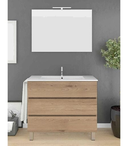 Allstone - Ensemble de salle de bain Imperia 3 tiroirs – 10 couleurs différentes – 15 dimensions – Meuble, lavabo et miroir – Sable 80x45Cm